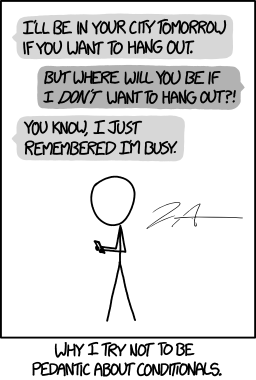 Example: If \(p\) denotes “I am at home.” and \(q\) denotes “It is raining.” then \(p \rightarrow q\) denotes “If I am home, then it is raining.”