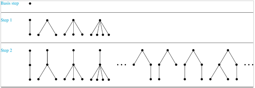 Proof: 1. Base case: \(T\) is a single vertex \(r\). Since \(n(T) = 1\) and \(h(T) = 0\), \[n(T) = 1 \leq 2^{0+1}-1=1\]